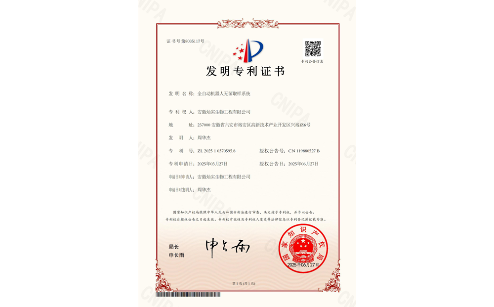 一種血漿袋自動破袋碎冰設備-發(fā)明專利證書